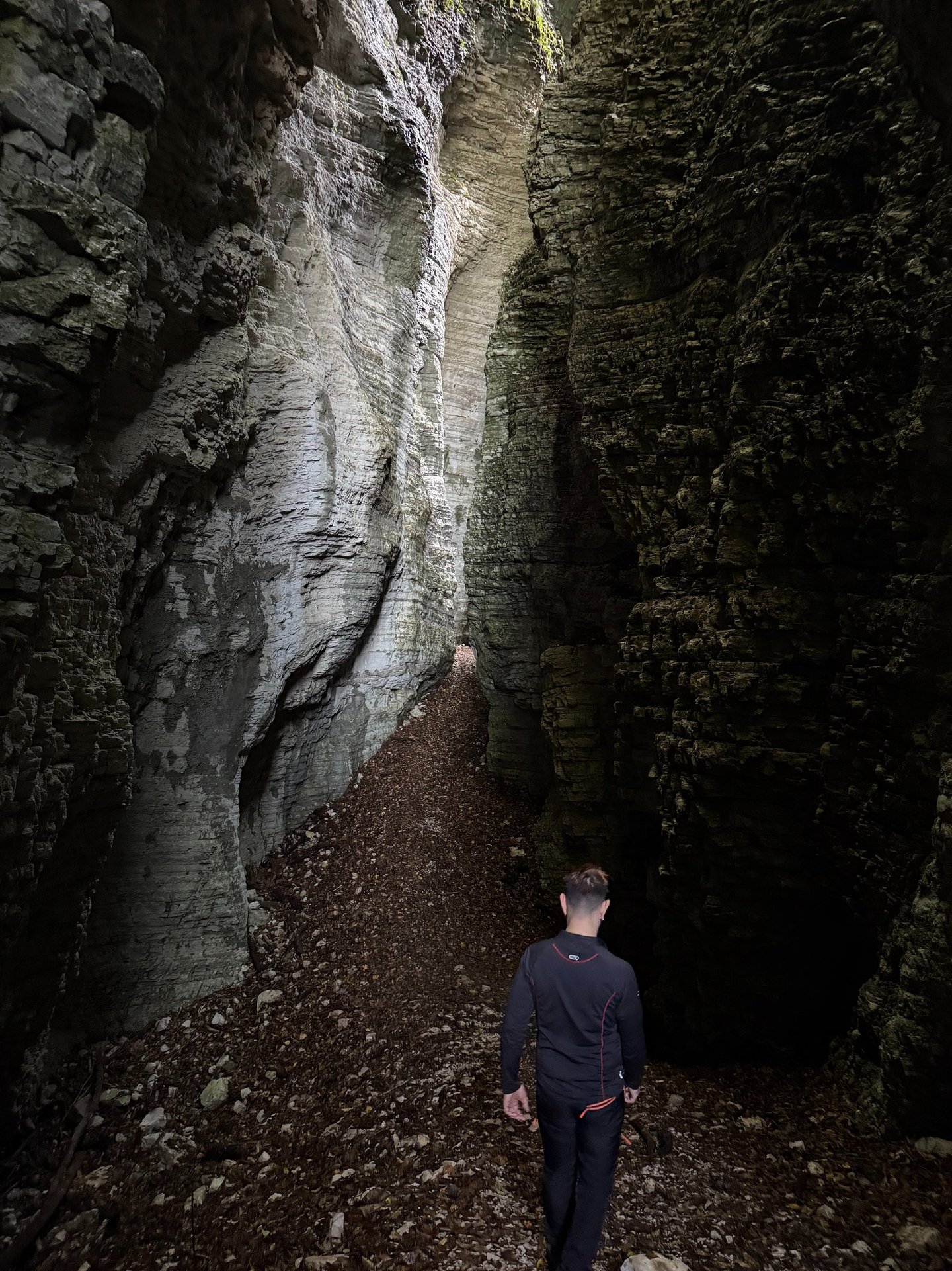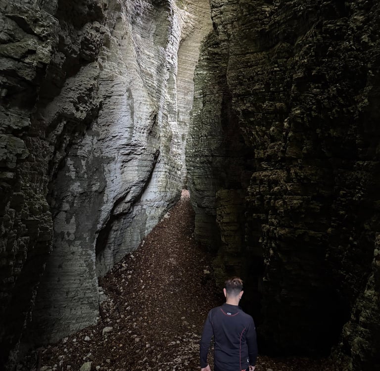 Camminare al suo interno è come entrare in un mondo primordiale: pareti verticali che si stringono, muschi che brillano d’umidità, il rumore ovattato dei propri passi.