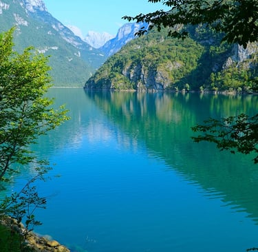 Emerald waters nestled between majestic mountains, a landscape that changes every season.