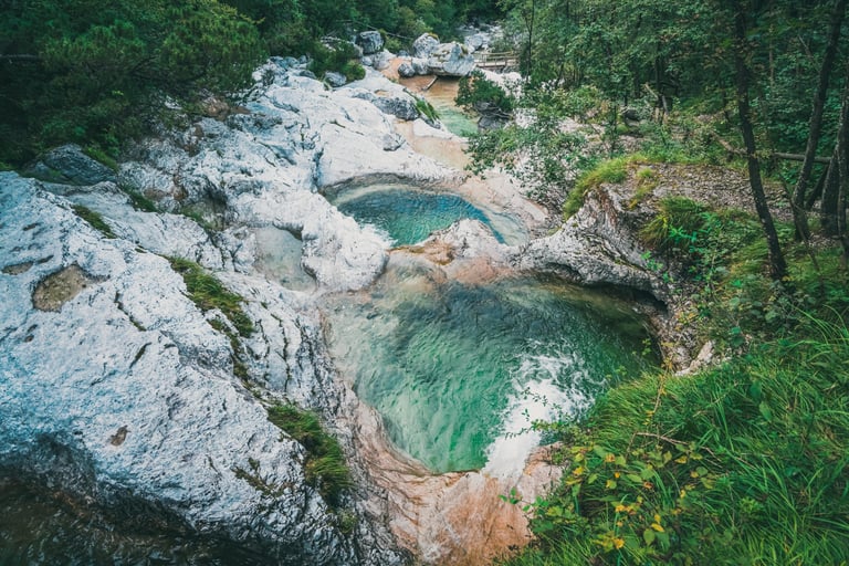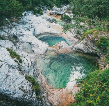 In the heart of the Dolomiti Bellunesi National Park, Cadini del Brenton are a chain of natural emerald pools connected by tiny waterfalls.