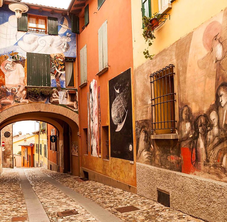 Every two years, Italian and international artists transform the village’s façades into contemporary works of art.