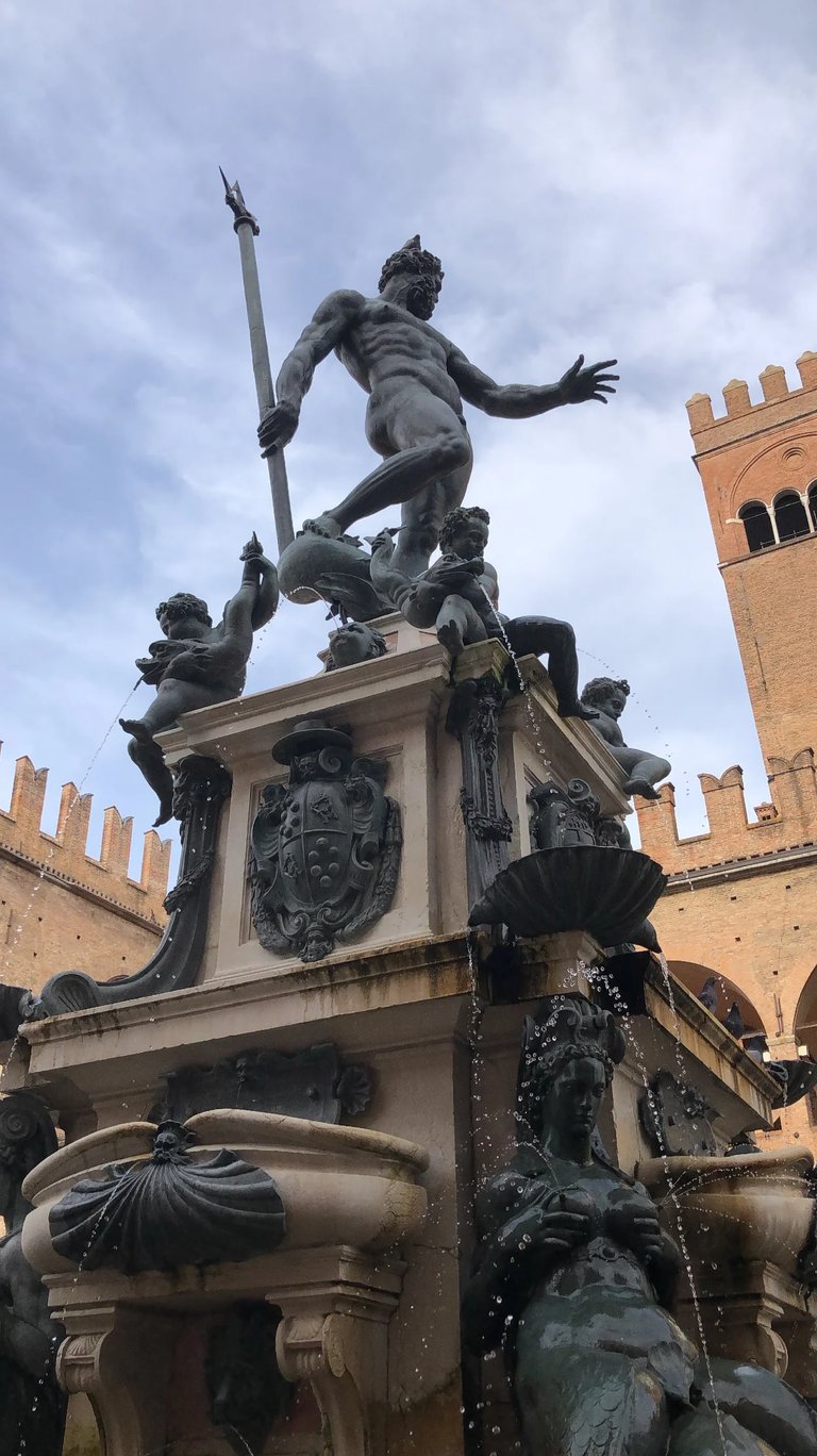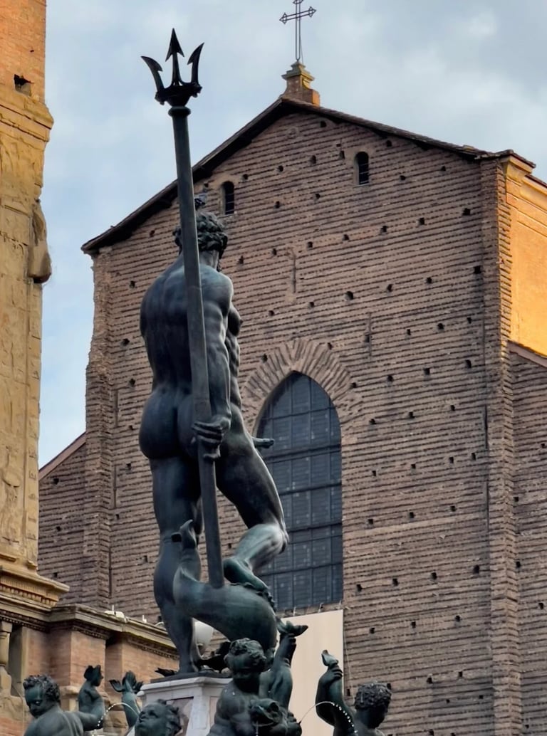 He cleverly bypassed the restriction with a perspectival trick: stand on the dark stone near the steps of the Sala Borsa — the so-called “stone of shame” — and Neptune’s outstretched index finger appears to rise from his lower abdomen, creating the illusion of an erect member.