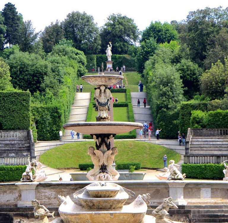 Alle spalle del palazzo, come un mondo nascosto, si aprono i Giardini di Boboli. Viali larghi, siepi alte, statue antiche, fontane che sembrano aspettare qualcuno. È un labirinto verde dove Firenze non parla più in pietra, ma in foglie e vento. Ogni panchina è un invito, ogni terrazza è un quadro sul cielo. Qui la città si toglie la corona e si mette un vestito semplice: verde, silenzioso, immenso. Boboli è un respiro.