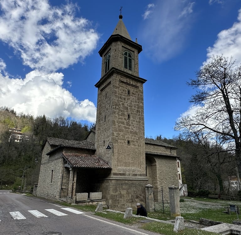 A pochi passi dalla cascata si trova la suggestiva Chiesa di San Cristoforo, un piccolo edificio in pietra perfettamente integrato nel paesaggio circostante. Il suo aspetto semplice, quasi monastico, rende l’atmosfera ancora più autentica e naturale. La presenza della chiesetta crea un dialogo armonioso tra storia, spiritualità e natura: un equilibrio che dona al luogo un fascino particolare, quasi sospeso nel tempo.